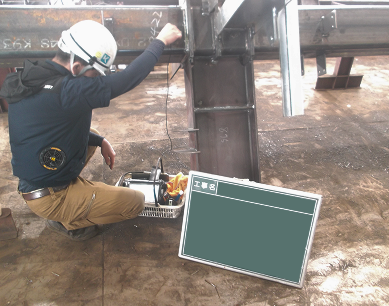 アーク溶接、半自動溶接、寸法検査後、内部の欠陥を確認する為に、(UT)超音波探傷検査を行います。